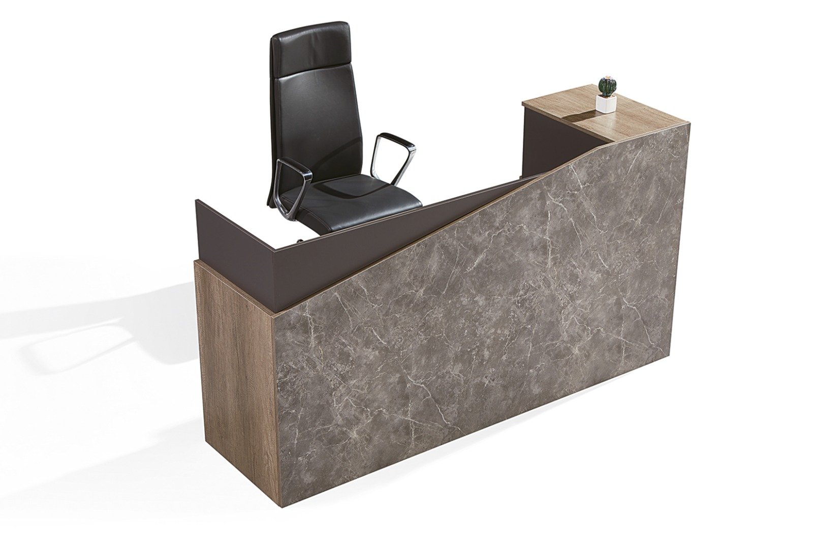 Banque d’accueil design associant matériaux nobles, éclairage intégré et solutions de rangement optimisées. Configuration évoluée pour accueil prestigieux.